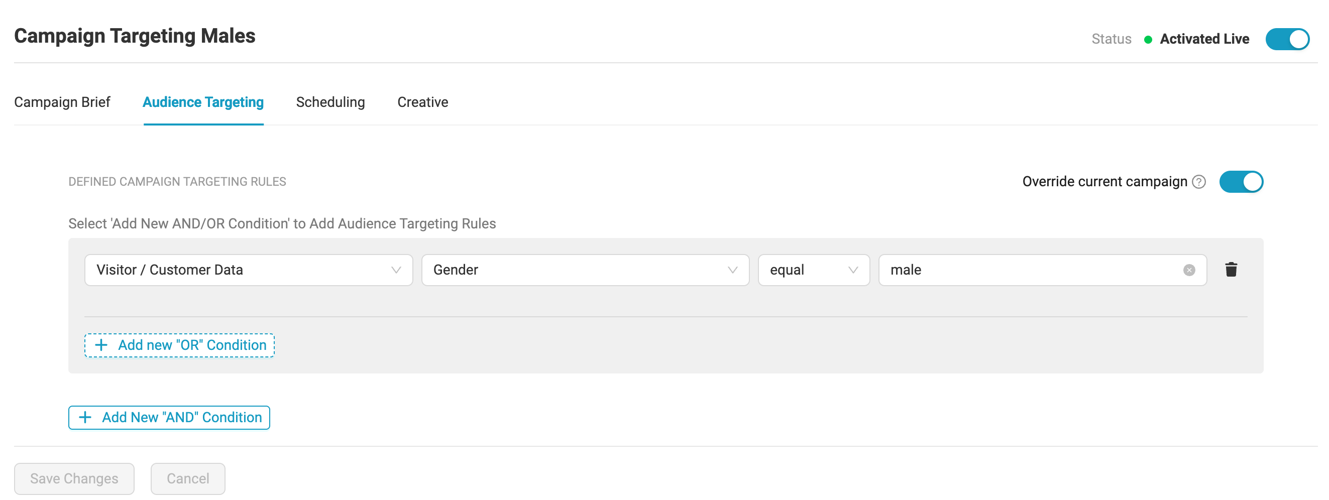 - Add a New Targeting Rule by selecting [+ Add New 'AND' Condition]